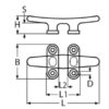 Disponible en cinco tamaños distintos, esta cornamusa plana se adapta fácilmente a diversas necesidades de instalación y cargas. Asegura un amarre seguro y eficiente para embarcaciones de diferentes dimensiones. Su diseño plano no solo optimiza el espacio en cubierta, sino que también facilita una instalación más sencilla y segura.